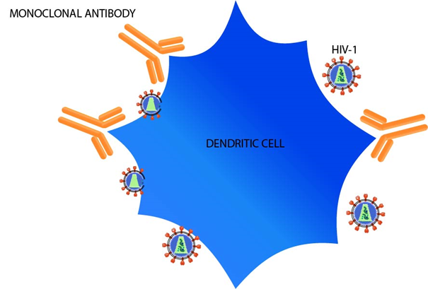 Diagram of an HIV-infected dendritic cell targeted by vaccine antibodies