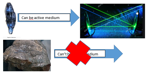 The active medium is a medium made up of a material that amplifies light. To create the reaction explained above, media composed of crystals are most often used. For example, sapphire, chromium, silicate... Not just any material can be used: only certain materials can create this light amplification.