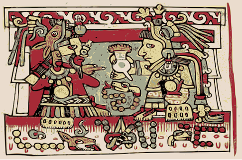 Representation of chocolate presentation by Mayans (source : http://avec-ou-sans-sucre.fr/2018/08/27/recette-du-chocolat-chaud-maya-xocoatl/)
