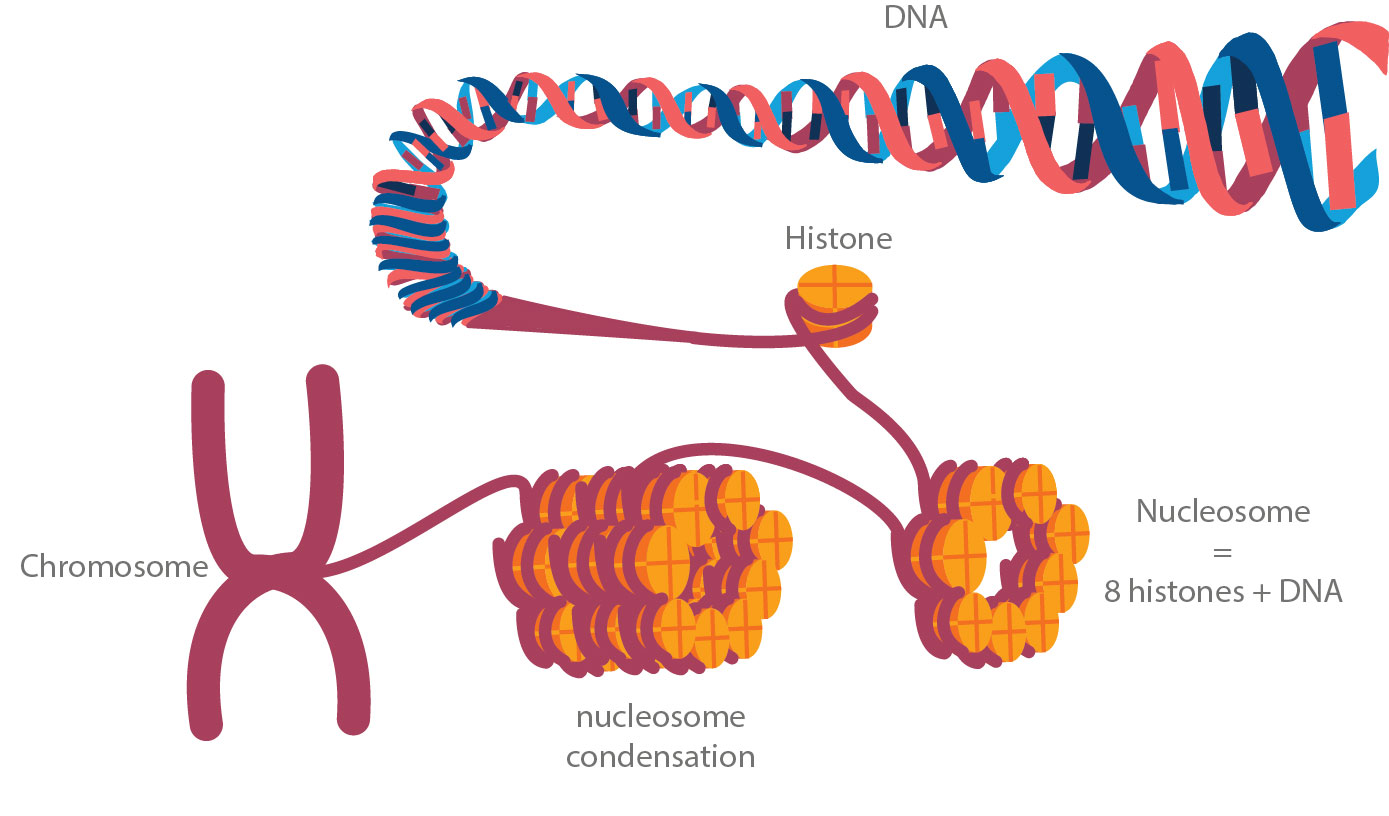 We currently know that parents do not pass on their genes only to their children. We saw in the article "This beautiful heritage of our mothers" that they also transmitted their mitochondria. We also know that during pregnancy and from the start, that women influence the cellular development of their children. Therefore, what we experience every day influences our genes.To understand where the changes in our genes take place, we need to zoom in to our DNA double helix when it condenses. To reach the state of chromosome, our database will be wrapped around proteins called histones. The assembly of 8 of these histones combined with DNA forms what is called a nucleosome.
