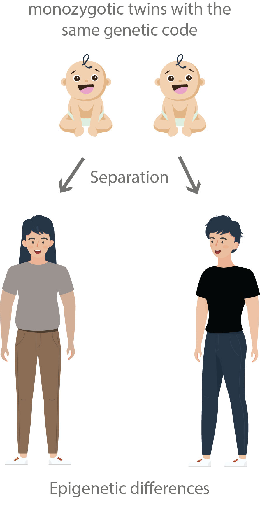 Before studying epigenetics, most biologists believed that living things were only the result of their "genetic program". In fact, what we inherited from our ancestors. This reflection poses an important problem: that of responsibility for our way of life and our behavior. Because if everything were already programmed in our genes, we could not adapt our behavior to the environment around us, nor decide to change it. The term epigenetics was established by scientist and philosopher Conrad Hal Waddington in 1942. An etymology that places this biological information "above our genetic code". It is a modification of gene expression without damaging DNA. This process is natural and necessary for the proper functioning of our body. The best-known example, to illustrate epigenetics, is that of monozygotic twins, originating from the same egg cell. Two living beings sharing the same genetic heritage, and therefore the same DNA code. However, if they are each placed in different environments, such as two separate countries, their own eating habits, this will cause epigenetic differences. We can then observe differences in behavior, physical and biological.