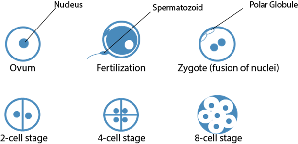 Diagram of fertilization and first embryonic development