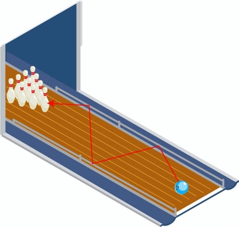 Illustration of a bowling ball traveling on a lane, imitating the evolution of the light in optical fiber