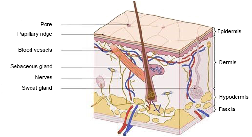 The skin is an essential organ of the human body (the largest in fact). The palms of the hands and feet have folds called papillary ridges. A papillary cell consists of a secretory gland (sebaceous or sweat) with an outlet pore (this is where perspiration comes out).