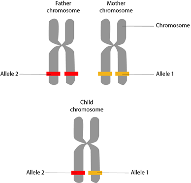 Diagram of allele transmission between biological parents and child