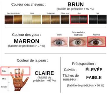 Extreme characteristics remain the "simplest" to determine, such as blue and brown eyes, while intermediate colours such as green are more difficult to demonstrate. Regarding hair colour, it is the childhood colour that is determined, as during growth and adolescence it is possible for hair to darken. A person defined as blonde by statistics could in fact be brown in adulthood. Indeed, age is a difficult parameter to take into account. However, recent studies on epigenetics tend to provide a biological age range (not birth age). Epigenetics is the influence of environmental elements on the ON/OFF switching of genes.