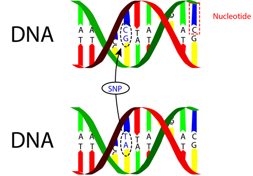 Diagram of an example of SNP. We find a variation of nucleotide