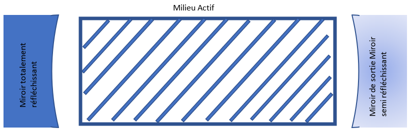 La cavidad LÁSER es la parte que contiene el medio activo y permite dirigir el flujo. En una extremidad de la cavidad hay un espejo, frente a éste, al otro lado de la cavidad, hay un espejo semireflectante (el espejo de salida). Durante la fase de bombeo, los fotones emitidos por los diferentes electrones van a « rebotar » en la cavidad contra los espejos. Si un fotón impacta uno de los dos espejos, ésta es enviado al otro lado de la cavidad, y debe entonces atravesar un nuevo medio activo. Lo que tiene como consecuencia que aun puede participar en la emisión estimulada. Es de esta manera como se crea el efecto bola de nieve, y así, la amplificación de la luz.