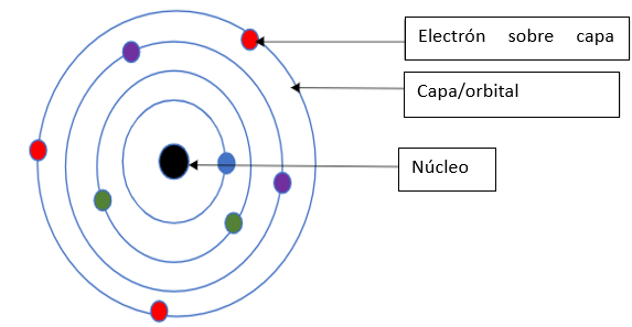Esquema de un átomo y de sus capas electrónicas