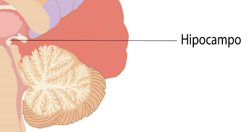 Esquema de la localización del hipocampo.