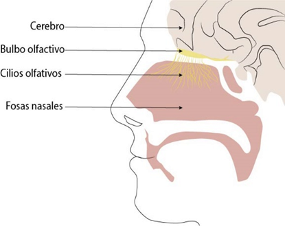 Esquema de la localización del bulbo olfativo