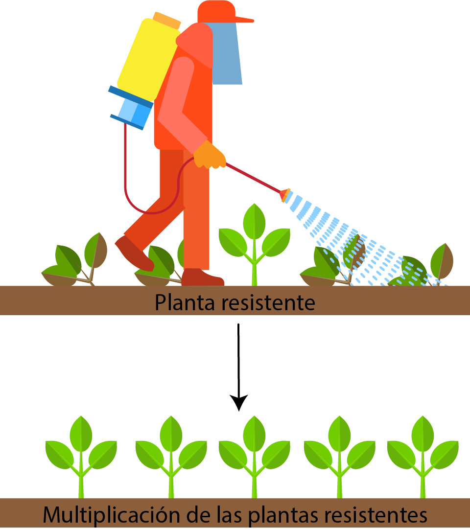 Esquema del proceso de resistencia de las plantas a los herbicidas