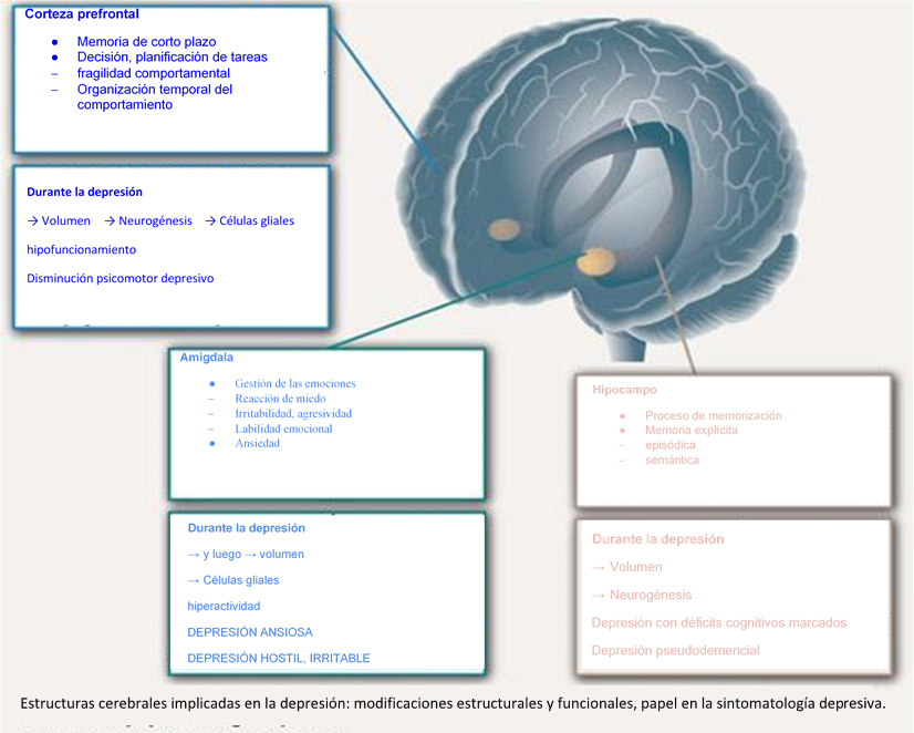 Estructura cerebral implicada en la depresión:modificación estructural y funcional, papel en la sintomatología depresiva. (Fuente: neuroplasticité.com)