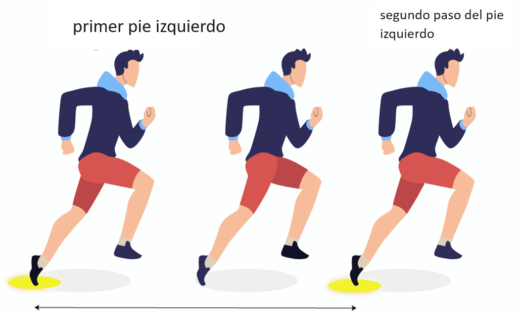 λ, la longitud de onda (distancia recorrida para el pie izquierdo antes de volver a tocar el suelo)