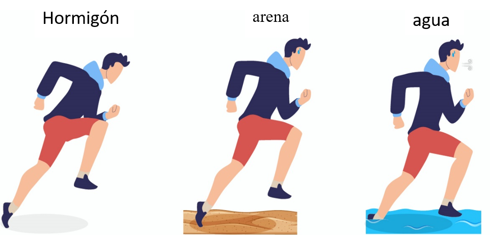 Ilustración del desplazamiento del corredor sobre tres pistas diferentes