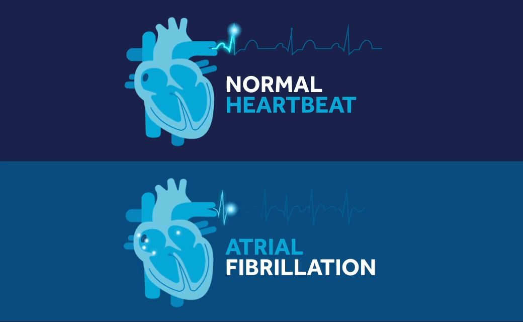 Todos los tipos de arritmias provocan palpitaciones y vértigos, en los casos más graves, una pérdida de conciencia. La fibrilación auricular es un caso corriente de arritmia dónde la aurícula del corazón emite impulsiones eléctricas de manera irregular, lo que impide a los ventrículos electrizar la sangre en volúmenes normales.