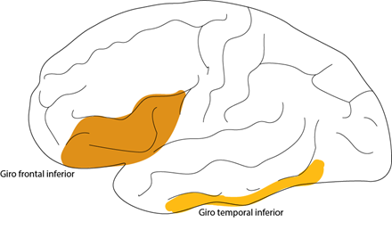 Cuando se escucha una música, tiene lugar un recorrido diferente. Se vuelve a encontrar una activación anormal del giro temporal superior/sulcus y giro frontal inferior.