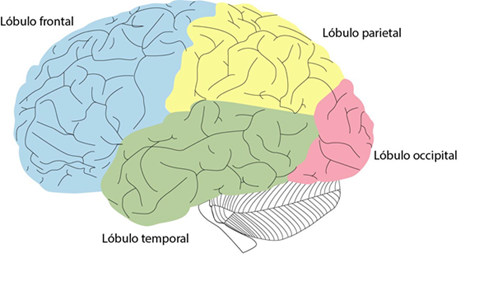 Esquema de los diferentes lóbulos del cerebro