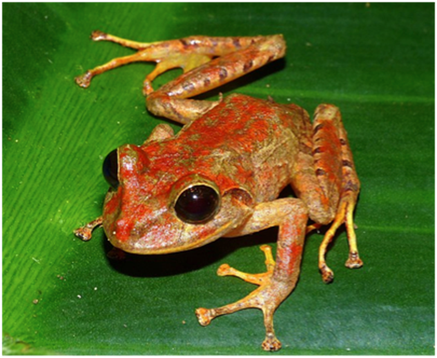 Figure 3: La rana de lluvia de Greta Thunberg, Pristimantis gretathunbergae (foto de Konrad Mebert y Abel Batista, Wikimedia Commons)