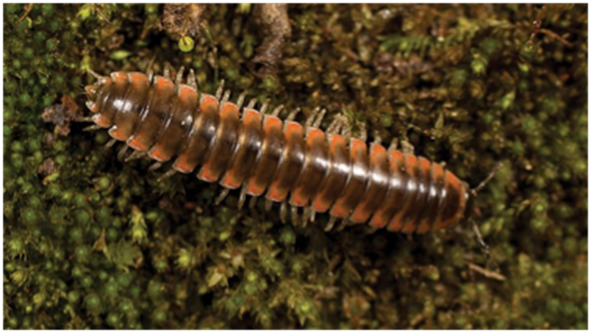 Figure 2: El ciempiés de espalda plana de Swift, Nannaria swiftae (foto de Hennen D.A., Means J.C, Marek P.E, Wikimedia Commons)