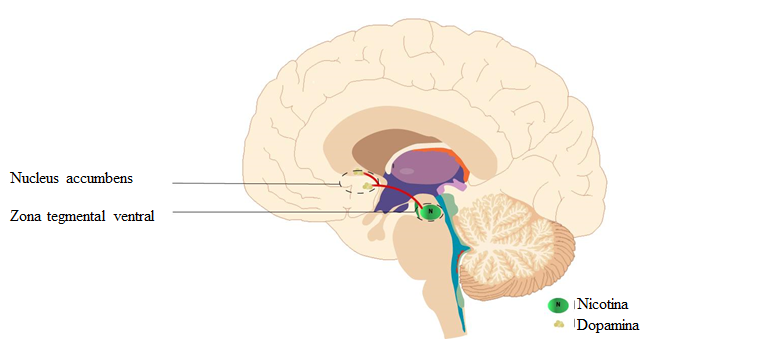 Esquema de la interacción nicotina/dopamina en el cerebro