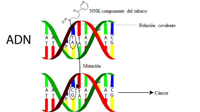 Esquema de una mutación del ADN provocado por un componente químico del tabaco