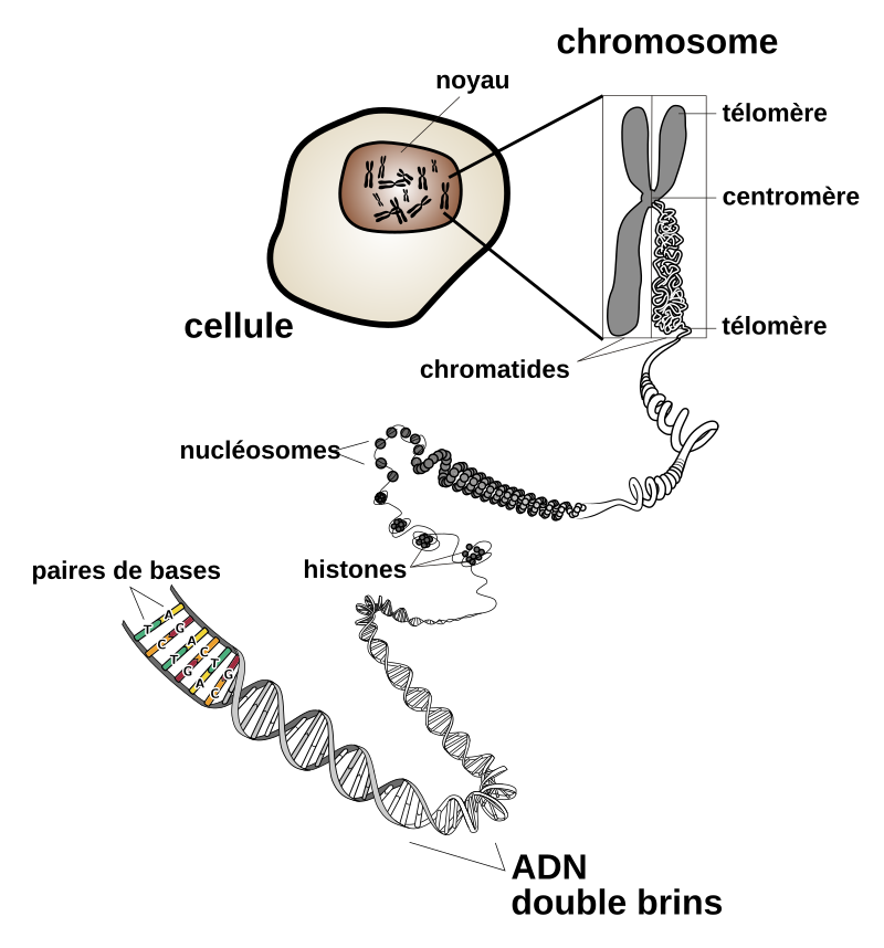 Description de la structure d'un chromosome (source : Wikipédia)