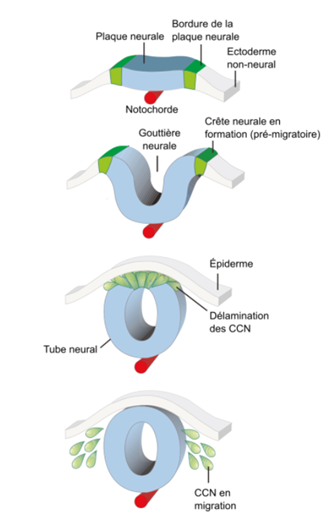 Figure 1 : Formation des crêtes neurales et devenir des cellules de crêtes neurales (Source : Simoes-Costa et coll., 2015)