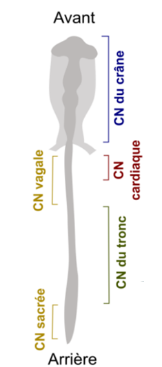 Figure 2 : Représentation des différentes sous-populations de CCN le long de l’embryon (Source : Knecht et coll., 2002)