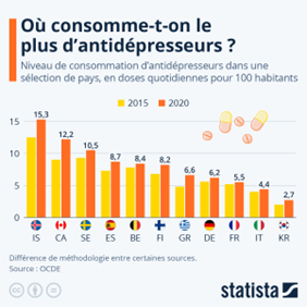 Les plus gros consommateurs d’antidépresseurs dans le monde. (Source : www.statista.com)