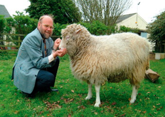 Photographie de Dolly et du chercheur qui a participé à sa création Ian Wilmut (Source : Roslin Institute, Royal (Dick) School of Veterinary Studies, University of Edinburgh, Edinburgh.)
