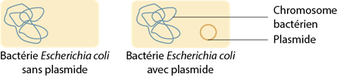 Schéma de la bactérie Escherichia coli avec et sans plasmide