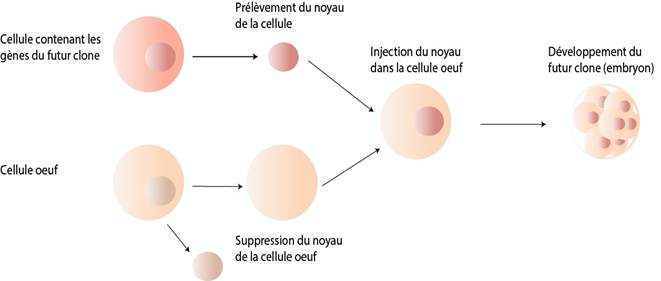 Schéma du clonage d’un individu par injection d’un noyau dans une cellule oeuf