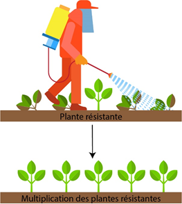 Un autre problème soulevé par les organismes écologiques et études montre que ces importantes dispersions d’herbicides favorisent la résistance de certaines plantes « néfastes » pour les cultures. Imaginons que dans votre champ ou votre jardin, un type de plante vous déplaise. Vous allez chercher à l’éliminer avec un herbicide. Suite à votre pulvérisation, une seule petite pousse restera. Vous n’y ferez sûrement pas attention au début, mais il s’agit de la pousse résistante. Lorsque celle-ci va se reproduire, votre herbicide ne suffira plus, il faudra alors augmenter sa concentration (pour que celui-ci soit plus efficace). Ce mécanisme peut se répéter à l’infini. Pulvériser des herbicides induit donc l’émergence de plantes très résistantes, ce qui peut provoquer de forts impacts écologiques et environnementaux.