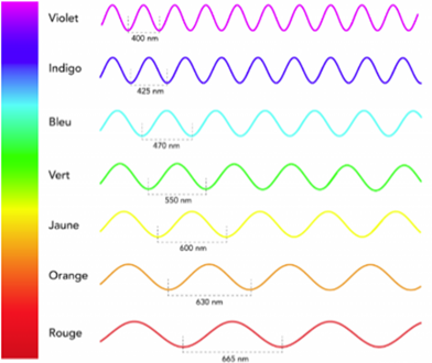 Schéma des longueurs d’onde bleue et rouge (source : https://lab.cercle-promodul.inef4.org/knowledge/post/lumiere-naturelle-les-grandeurs-physiques-partie-1)
