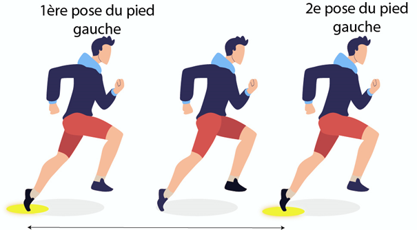 T, période (temps parcouru pour le pied gauche avant de retoucher le sol)