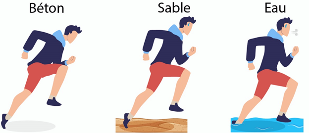Illustration du déplacement d’un coureur sur trois pistes différentes