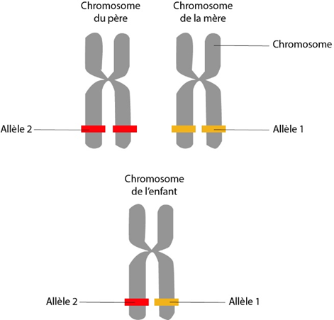 Pour mieux comprendre comment cela est possible, il est nécessaire de se plonger au plus profond de nos cellules. On y retrouve le génotype, l’ensemble de l’information génétique d’un individu. Ces gènes qui nous composent et définissent nos caractères physique, morphologique (phénotype) et moléculaire sont présents sous des formes variables que l’on nomme allèles. Nos parents nous lèguent chacun un allèle de chaque gène.