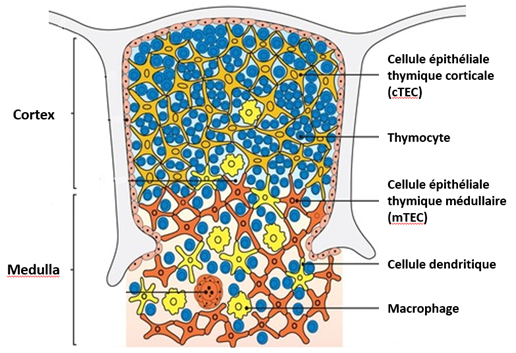 Figure 1: Schéma simplifié du thymus. (Adapté de The immune system, 4th édition, Garland Science 2015.)