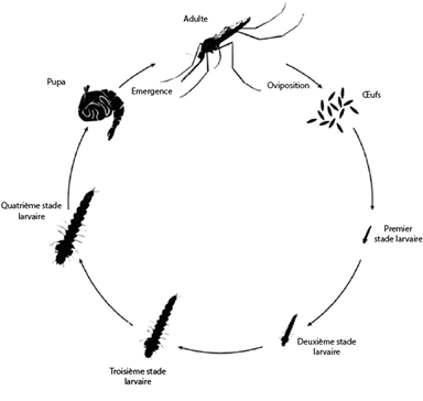 Le cycle de vie des moustiques se décompose en quatre stades distincts : œuf, larve, nymphe et adulte. Les femelles adultes pondent leurs œufs dans des environnements aquatiques, parfois dans des eaux stagnantes, mais certaines espèces ont développé la capacité de pondre dans de minuscules accumulations d'eau, comme les trous dans les arbres ou les récipients artificiels. L'œuf éclot en quelques jours, donnant naissance à une larve aquatique, une phase cruciale dans le développement du moustique.