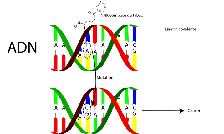 Schéma d’une mutation de l’ADN provoqué par un composé chimique du tabac